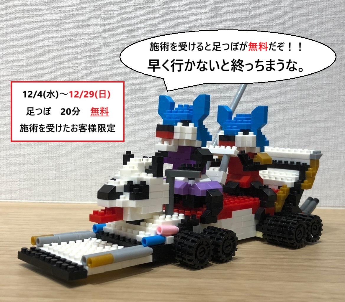 12/4(水)~12/29(日)まで施術を受けて頂いたお客様のご希望で【足つぼ […]