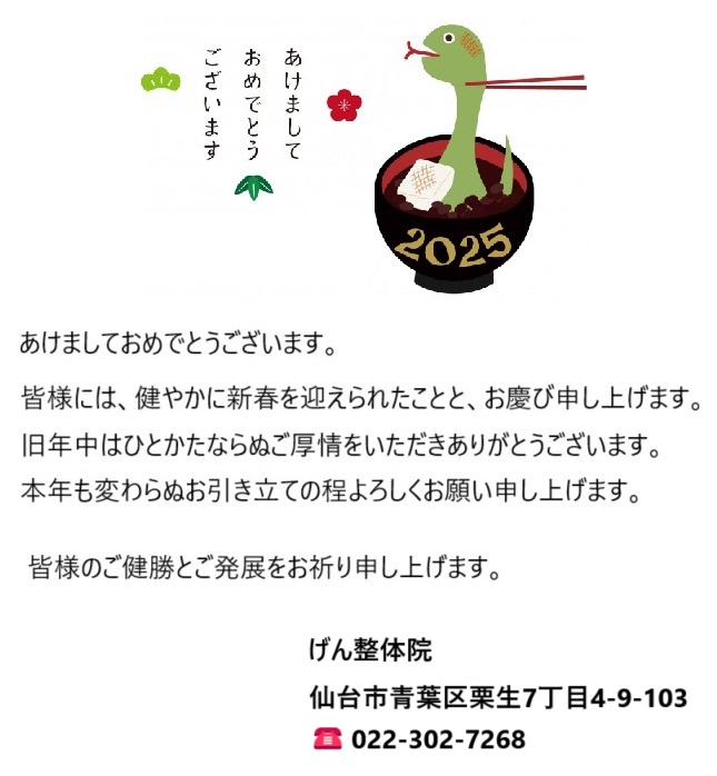 明けましておめでとうございます。 本年も【げん整体院】を宜しくお願い致します。 […]