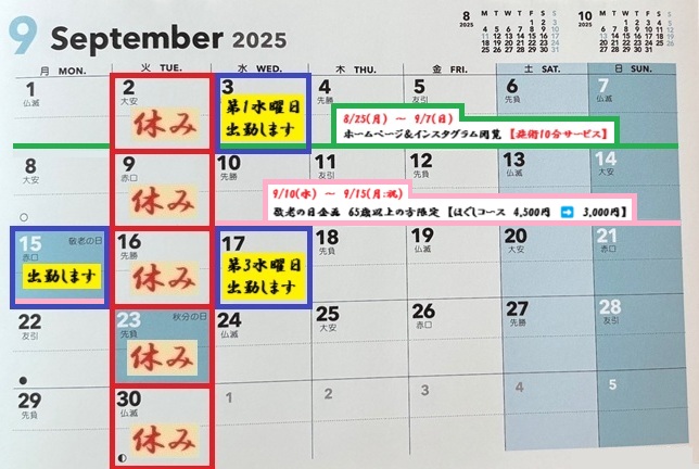 9月の営業日です📅 9/10(水)・9/24(水)の第1・3水曜日は営業します😆 […]