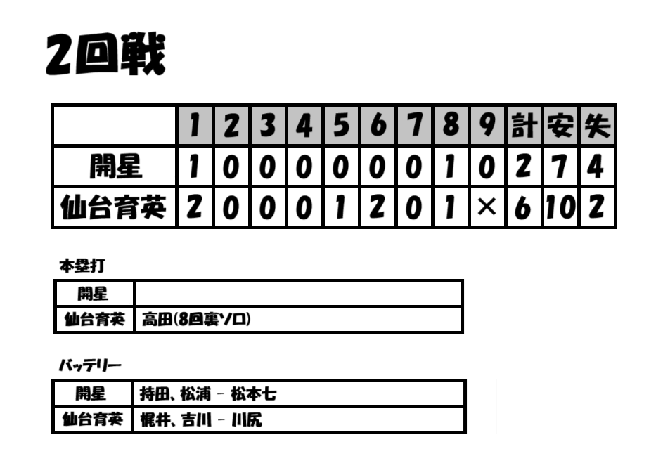 本日8:00から開星(島根)と対戦して6-2で仙台育英が勝利しました🎉✨ そして […]