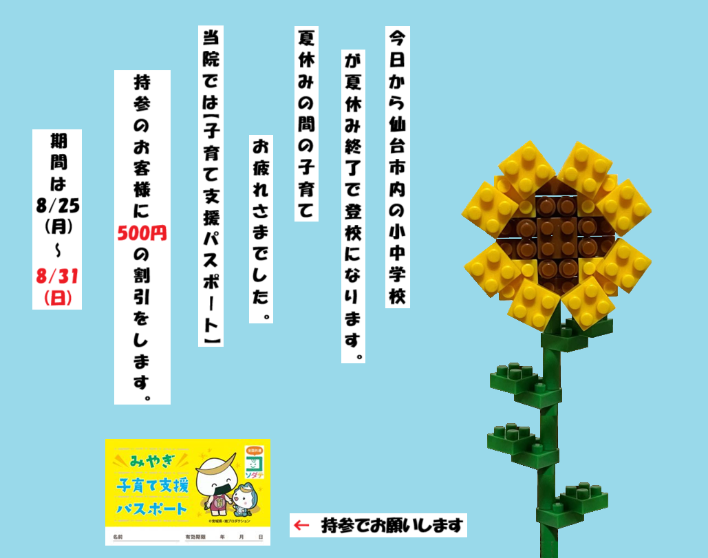 8/25(月)~8/31(日) 子育て支援パスポート持参で500円割引🙌