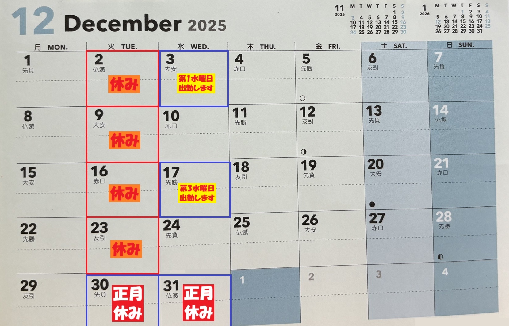 12月の営業日です📅 12/3(水)・12/17(水)の第1・3水曜日は営業しま […]