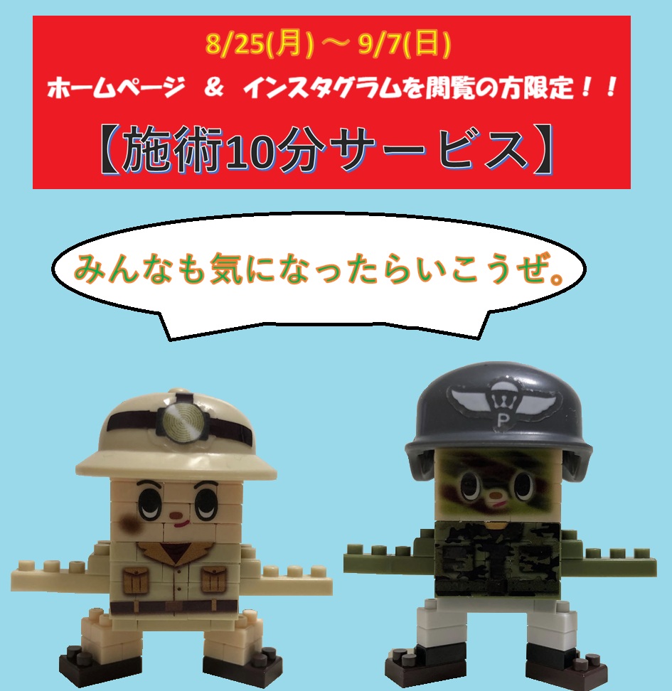 8/25(月)〜9/7(日)までホームページ & インスタグラムを閲覧して頂いたお客様は【施術時間 10分サービス】します👍✨