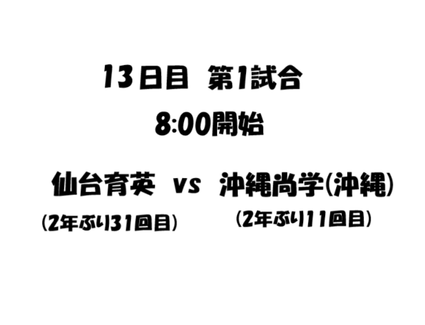 8/17(日) 8:00 仙台育英 vs 沖縄尚学(沖縄)