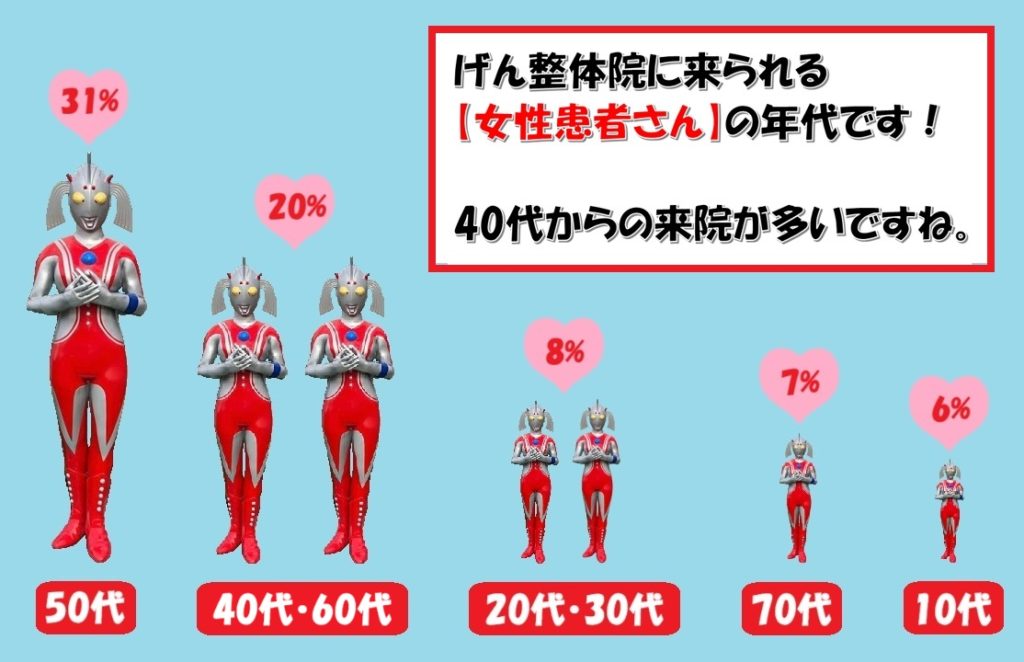 当院に来られる【女性の患者さん】の年代を調べてみました✋