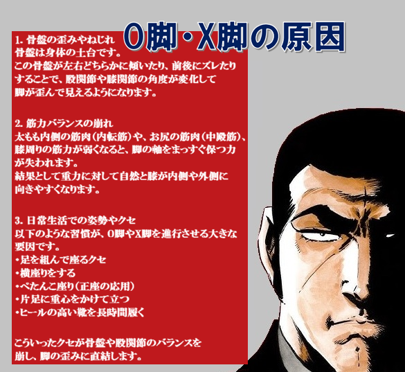 以下のような習慣がO脚やX脚を進行させる大きな要因です。