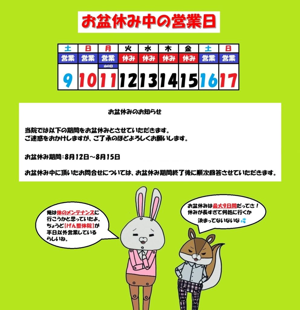 お盆休みの営業日