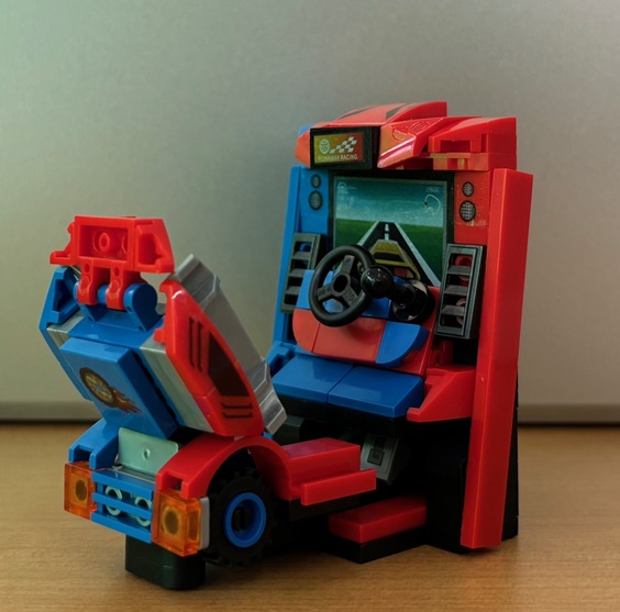 この作品はゲームセンターにある【クルマのレースゲーム】です。