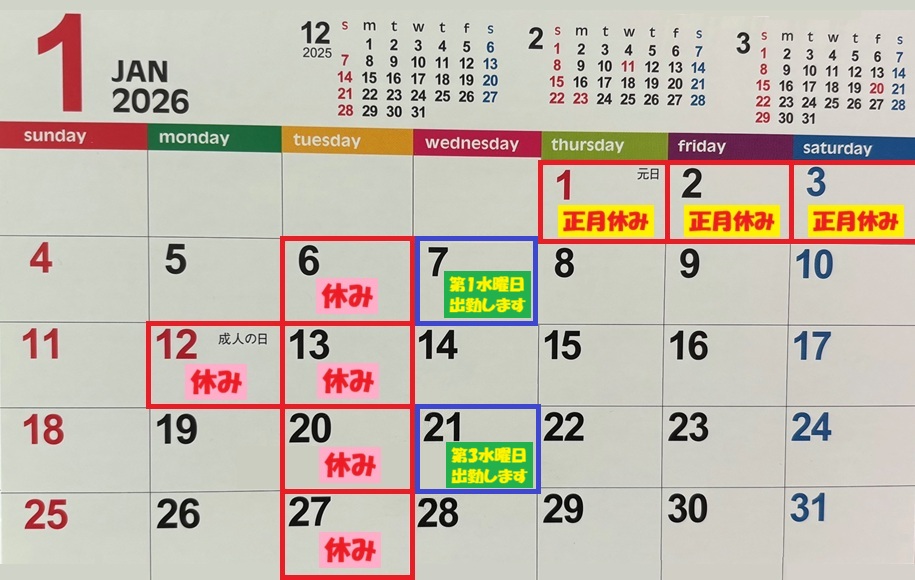 2026年1月の営業日🎉✨