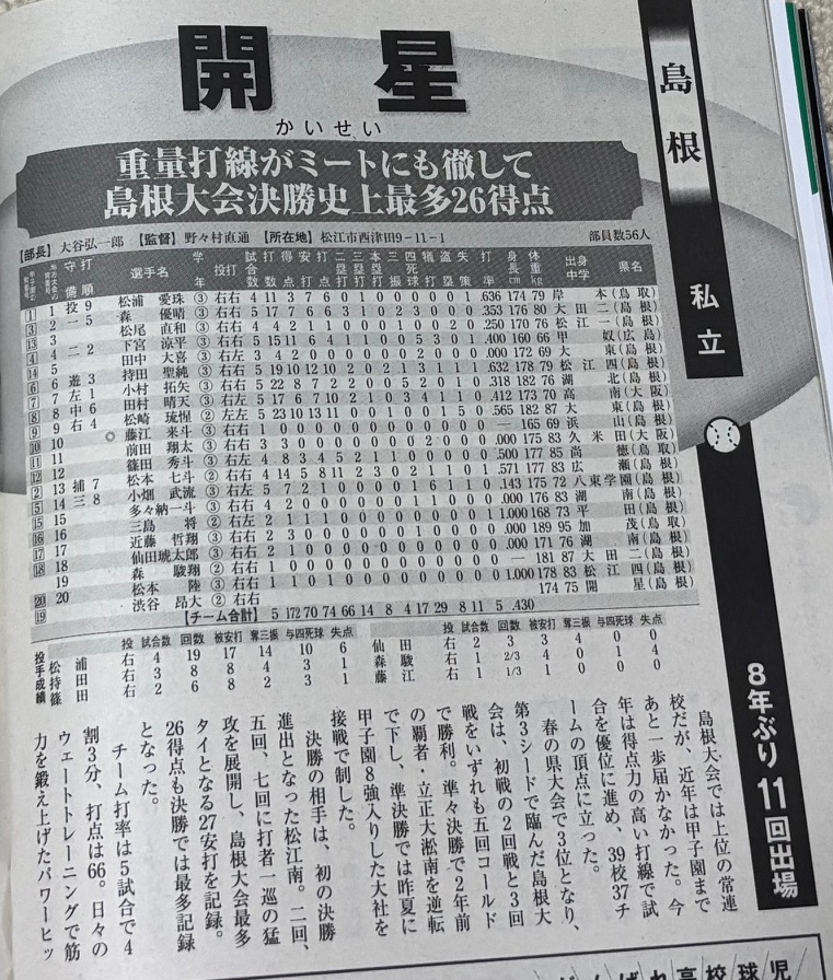 8/14(木) 8:00から対戦の開星(島根)を研究