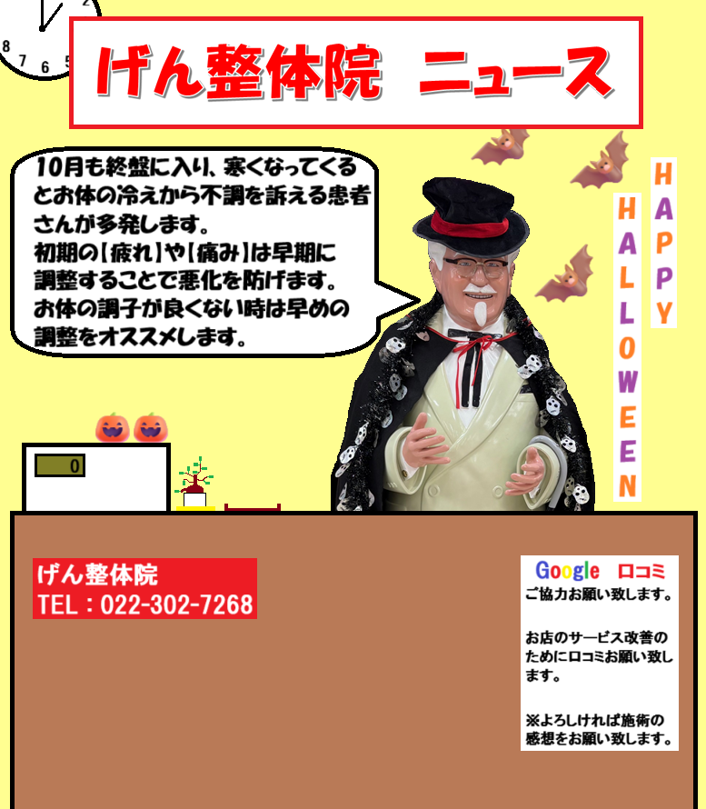『げん整体院ニュース』です✋ 10月は来週で終了して11月に変わります。 10月 […]
