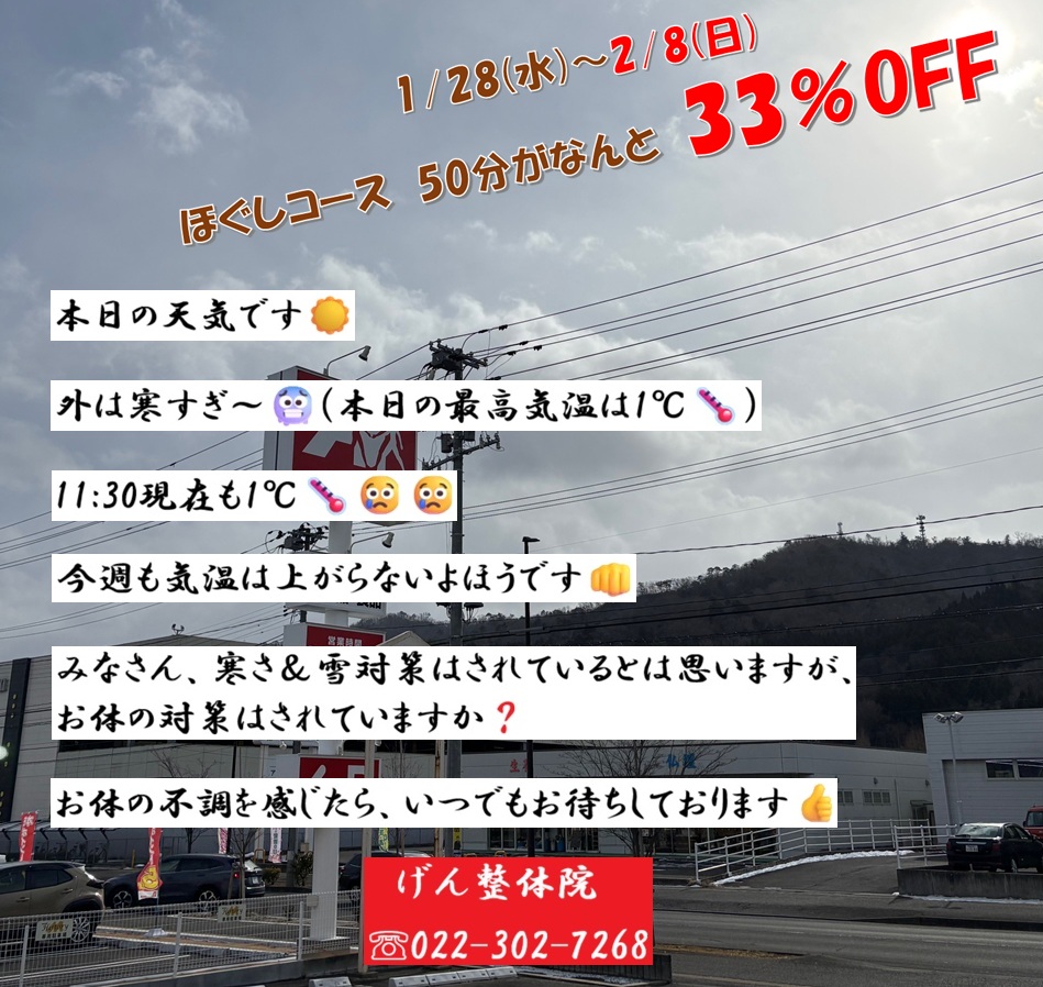『げん整体院ニュース』です✋ 1月も後半に入り日中もだいぶ冷える日が増えてきまし […]
